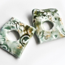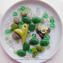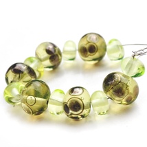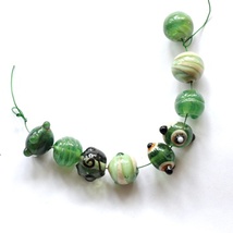 SLUTTSALG -30% Grønne ornamenterte lampworkperler