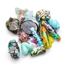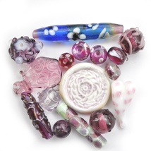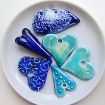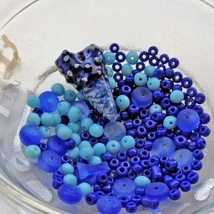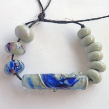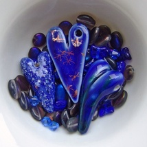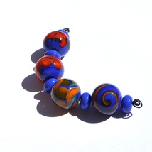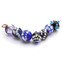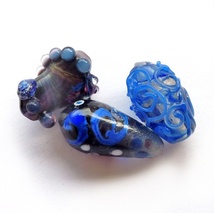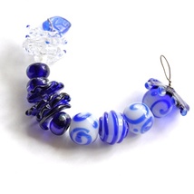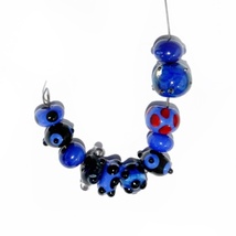 SLUTTSALG -30% Sett med blå håndlagde lampworkperler
