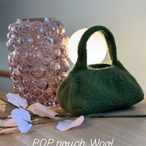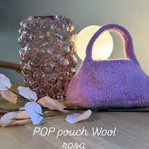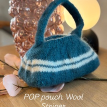 Designer og strikker småartikler for salg. Nå er det POP pouch Wool som er i vinden. Mange farger og mønstre kommer.