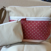 Skulderveske linlook, inkl sminkepung. Rosa linlook ytterlomme