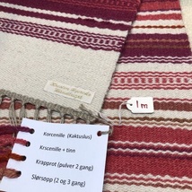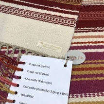 Vever også bordløpere i lin, og løpere i plantefarget ullgarn på hamp renning, vesker, gulvryer, veggtekstiler.