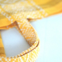 Handlenett av gul duk med hvit dekor SALG 30% Førpris 230,-