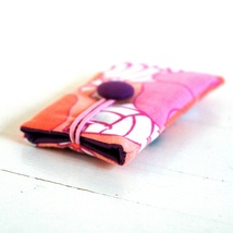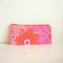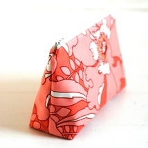 SALG 30% Før 190,- Sminkepung / toalettmappe røde og rosa retroblomster