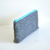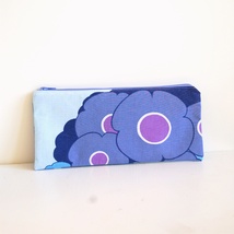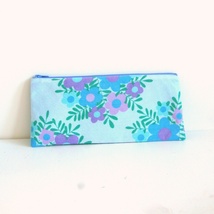 SALG! 30% Før 140,- Avlang pung - Blå og turkise blomster