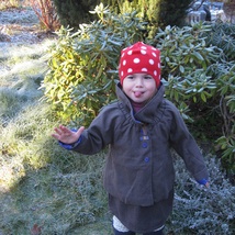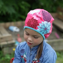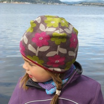 Blomstrete barnelue i chenille, str M (ca 2-4 år)
