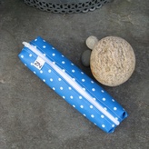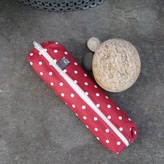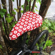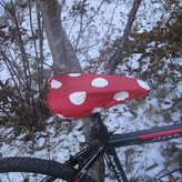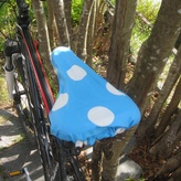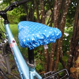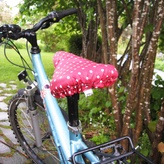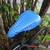 Hvitt regntrekk med marihøner til sykkelsete, str stor