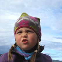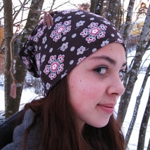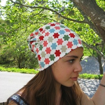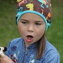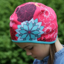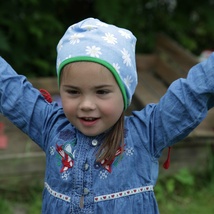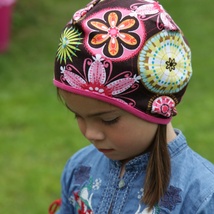 Blomstrete barnelue i chenille, str L (ca 5-7 år)
