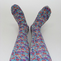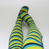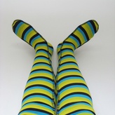 Lange stripete knestrømper i grønt og blått, str:36-38