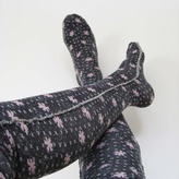 Lange knestrømper med grå og sorte striper, 36-38 og 39-41