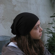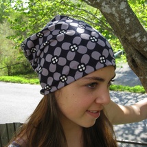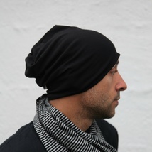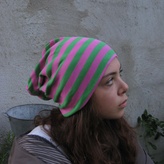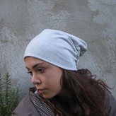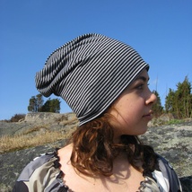 Smalstripete lysgrå og hvit lue i bomullsjersey