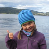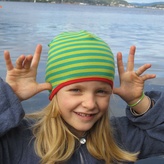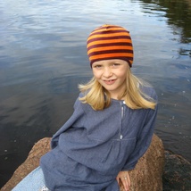 Lilla stripete barnelue i chenille, str L (ca 5-7 år)