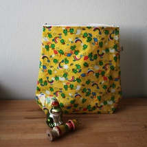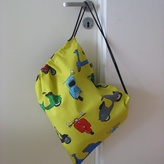 Sennepsgult regntrekk med prikker til sykkelsete, str stor