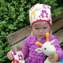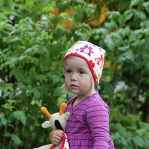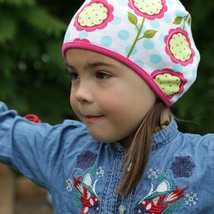 Blomstrete barnelue i chenille, str S (ca 1-2 år)