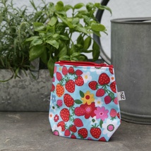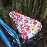 Hvitt regntrekk med jordbær til sykkelsete, str stor