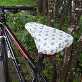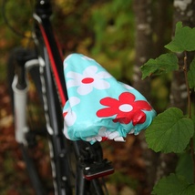 Lyst turkis regntrekk med blomster til sykkelsete, str stor