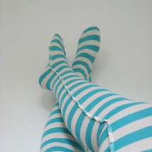 Lange stripete knestrømper i turkis og hvit, str:39-41